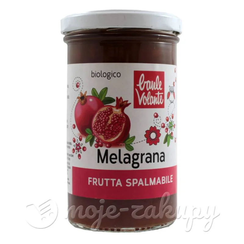 Składniki: granat* (70g na 100g gotowego produktu), syrop z agawy*, przecier jabłkowy*, sok z cytryny*, substancja żelująca: pektyny cytrusowe