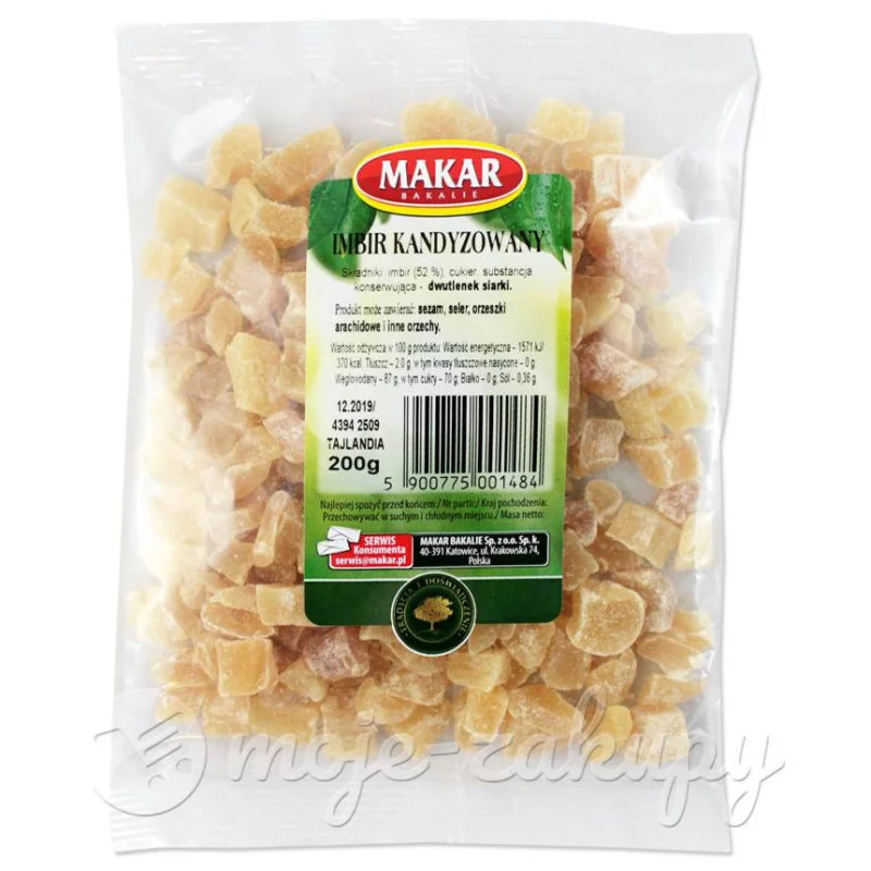 Składniki: imbir (52%), cukier, substancja konserwująca- dwutlenek siarki.