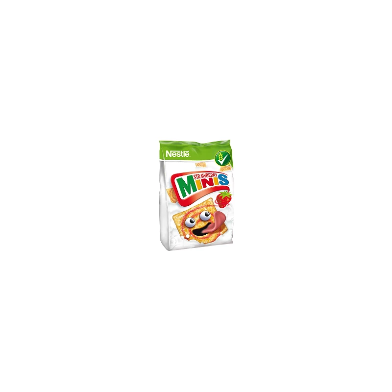 Składniki: mąki 61%, cukier, olej palmowy, syrop glukozowy, maltodekstryna, skrobia kukurydziana, glukoza, sól, proszek truskawkowy, regulator kwasowości, emulgator, aromat truskawkowy, przeciwutleniacz, koncentrat warzywno-owocowy. SUBSTANCJE WZBOGACAJĄCE: WITAMINY I SKŁADNIKI MINERALNE (niacyna, kwas pantotenowy, witamina B6, B2, B1, kwas foliowy, witamina D, wapń, żelazo).