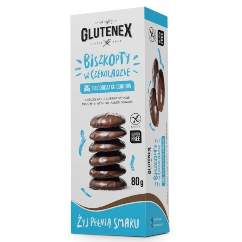 Biszkopty w czekoladzie bez dodatku cukrów 80g – Glutenex