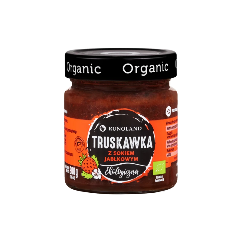 truskawki* (60 %), zagęszczony sok jabłkowy* (33 %), woda, substancja zagęszczająca: pektyny. (*certyfikowany składnik ekologiczny)