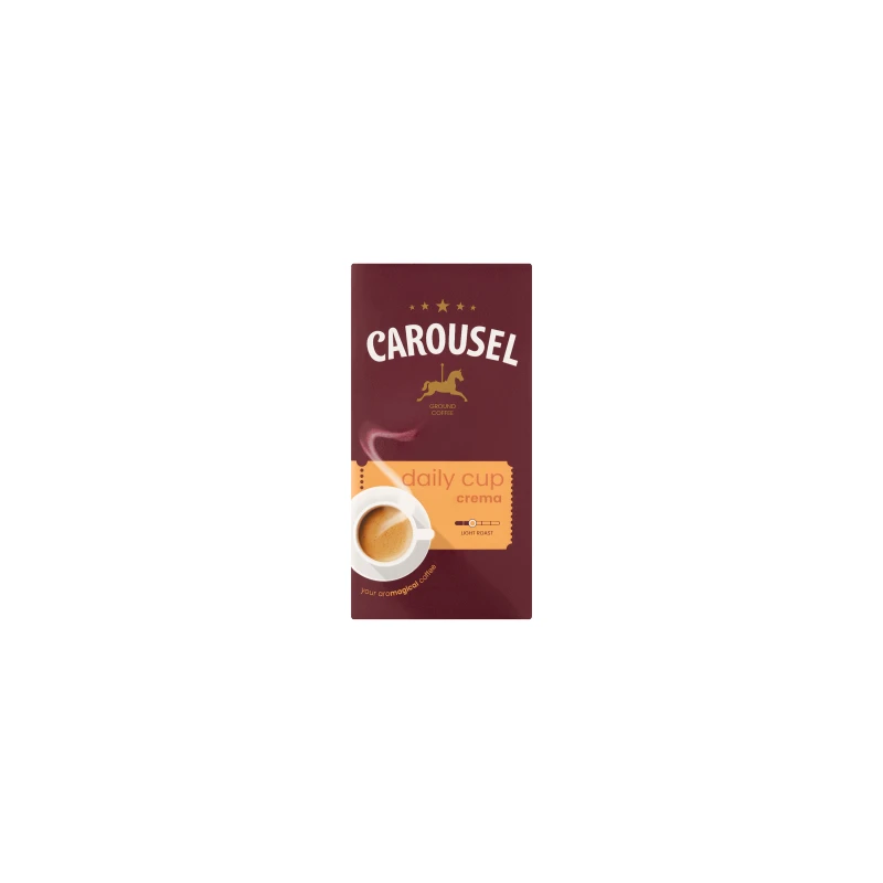Kawa mielona palona Carousel Daily Cup Crema 250 g to wysokiej jakości aromatyczna kawa mielona o łagodnym, kremowym smaku, idealna do codziennego parzenia i doskonała do ekspresów oraz tradycyjnych metod zaparzania.