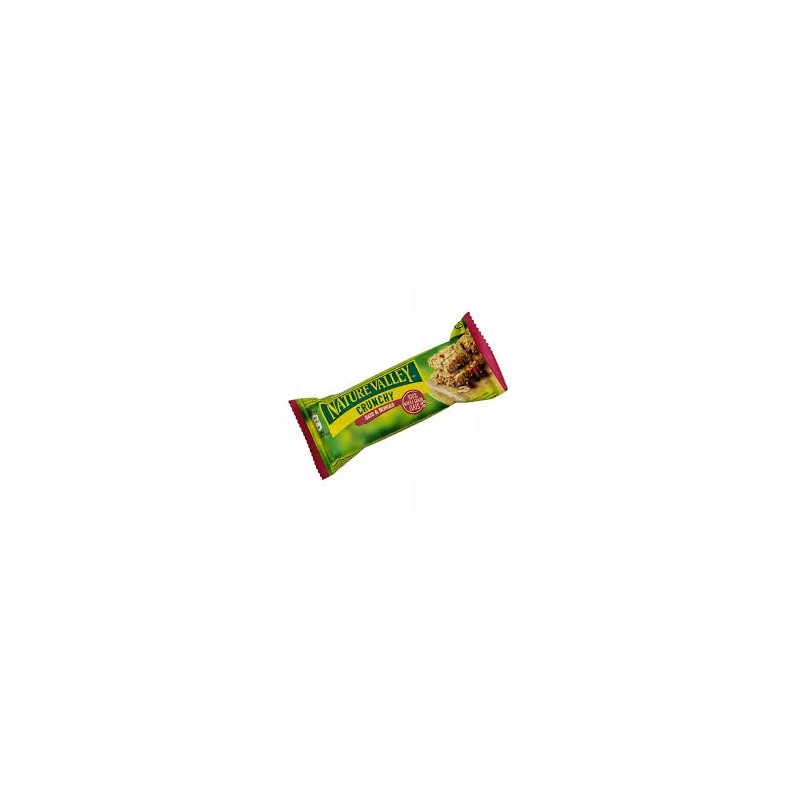 Nature Valley Oats & Berries 42 g to chrupiący baton z pełnoziarnistych płatków owsianych z dodatkiem owoców, idealny jako szybka i pożywna przekąska w ciągu dnia.