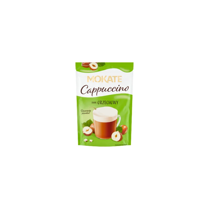 Cappuccino o smaku orzechowym. Rozpuszczalny napój kawowy w proszku.