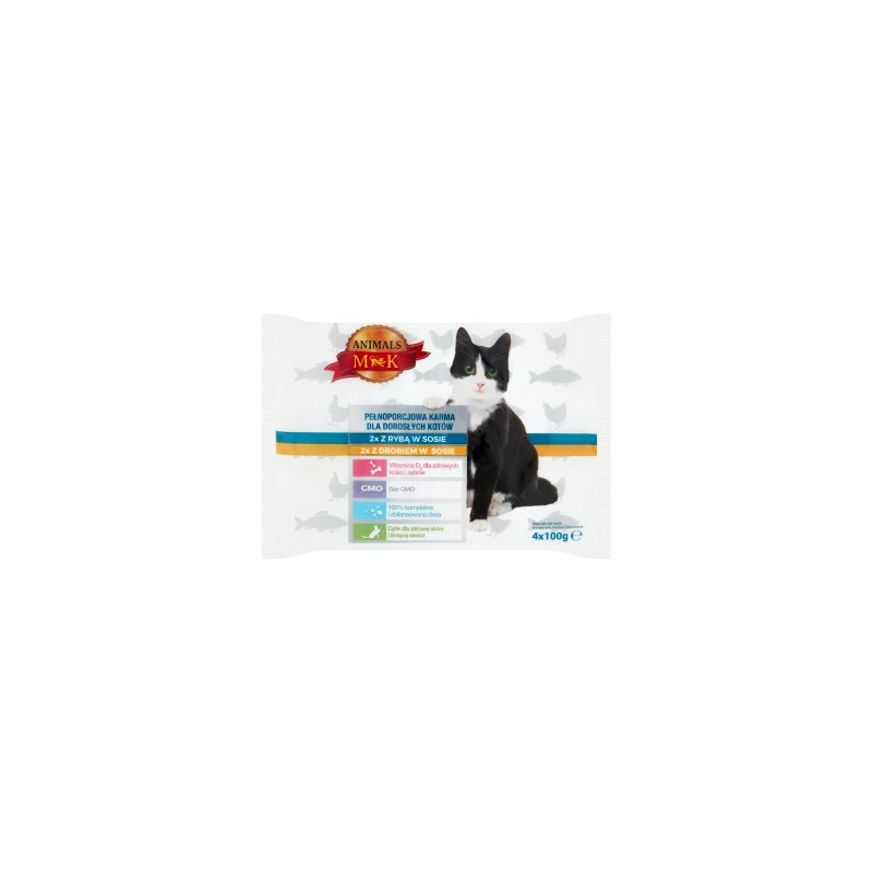 Pełnoporcjowa karma dla dorosłych kotów z drobiem i rybą w sosie.