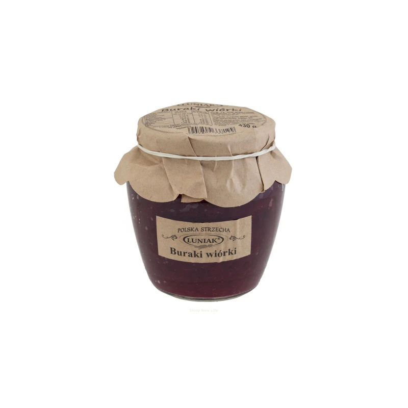Buraczki Wiórki 430 g od Luniaka to klasyczny dodatek do polskiego obiadu w wygodnej formie drobnych wiórków. Soczyste, delikatnie przyprawione i gotowe do spożycia, idealnie komponują się z tradycyjną pieczenią, zrazami czy kotletami. Wybierz naturalny smak i domową jakość polskiego producenta.