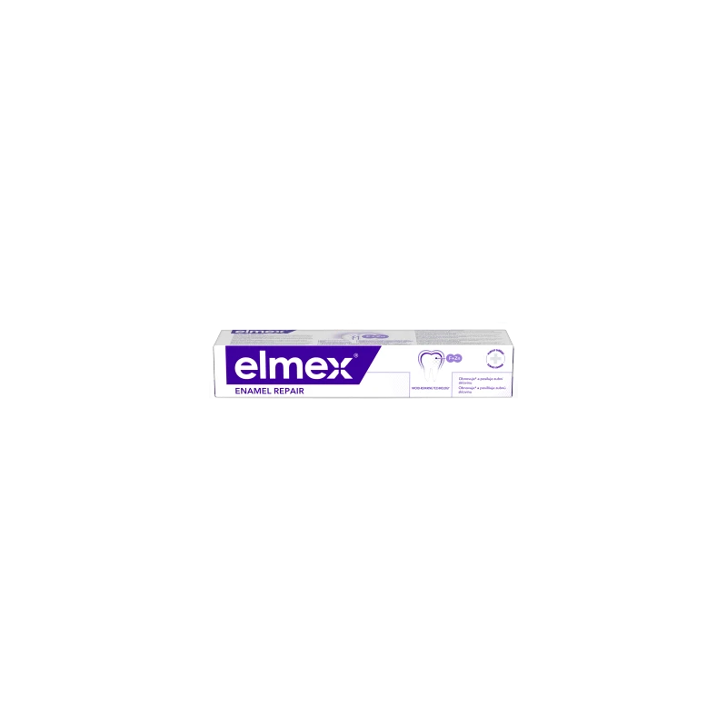 Pasta do zębów elmex Enamel Repair pomaga odbudować* i wzmocnić szkliwo poprzez remineralizację i ochronę przed codziennymi dzialaniem kwasów *.