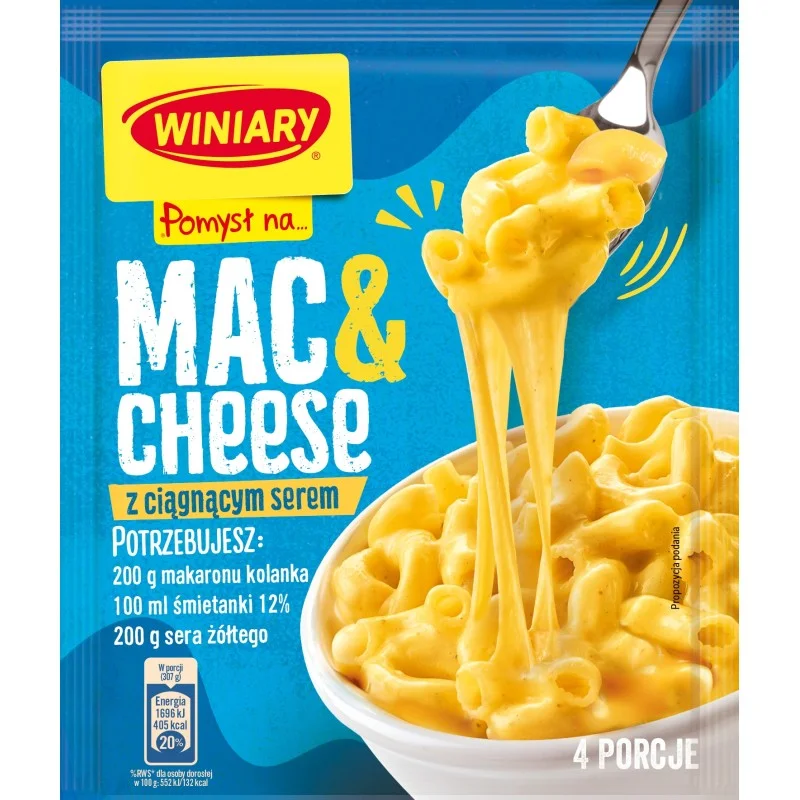 WINIARY Pomysł na... Sycący makaron z ciągnącym serem 28 g to idealne rozwiązanie dla miłośników gęstych, aksamitnych sosów serowych. Unikalna receptura sprawia, że ser idealnie się ciągnie, otulając każdy kawałek makaronu głębokim smakiem. Jeśli szukasz sposobu na szybki, satysfakcjonujący i domowy obiad, ten produkt spełni Twoje oczekiwania, gwarantując restauracyjną jakość w Twojej kuchni.