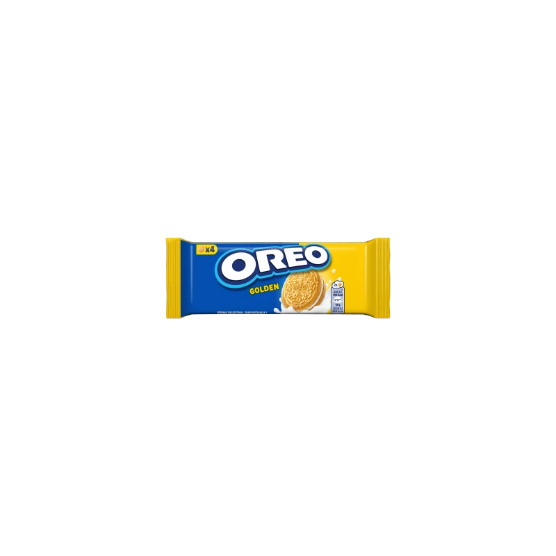 Oreo Golden, pszenne ciasteczka z nadzieniem o smaku waniliowym, bez dodatku kakao znanego z klasycznej wersji Oreo. Oreo Golden, jasne, złote chrupiące ciasteczka z nadzieniem waniliowym, przyciągają uwagę swoim ciepłym i apetycznym wyglądem, zachęcając do spróbowania. Oreo Golden zachwycają delikatnym smakiem i aksamitnym nadzieniem, które rozpływa się w ustach. Do produkcji ciastek Oreo Golden wykorzystano starannie dobrane składniki, które gwarantują ich wyjątkowy smak i delikatność. Chrupiące ciasteczka Oreo Golden to idealna przekąska, która umili każdą przerwę w pracy czy urozmaici czas podczas podróży Pakowane w wygodne opakowanie, w których znajdziesz 4 ciasteczka Oreo Golden.