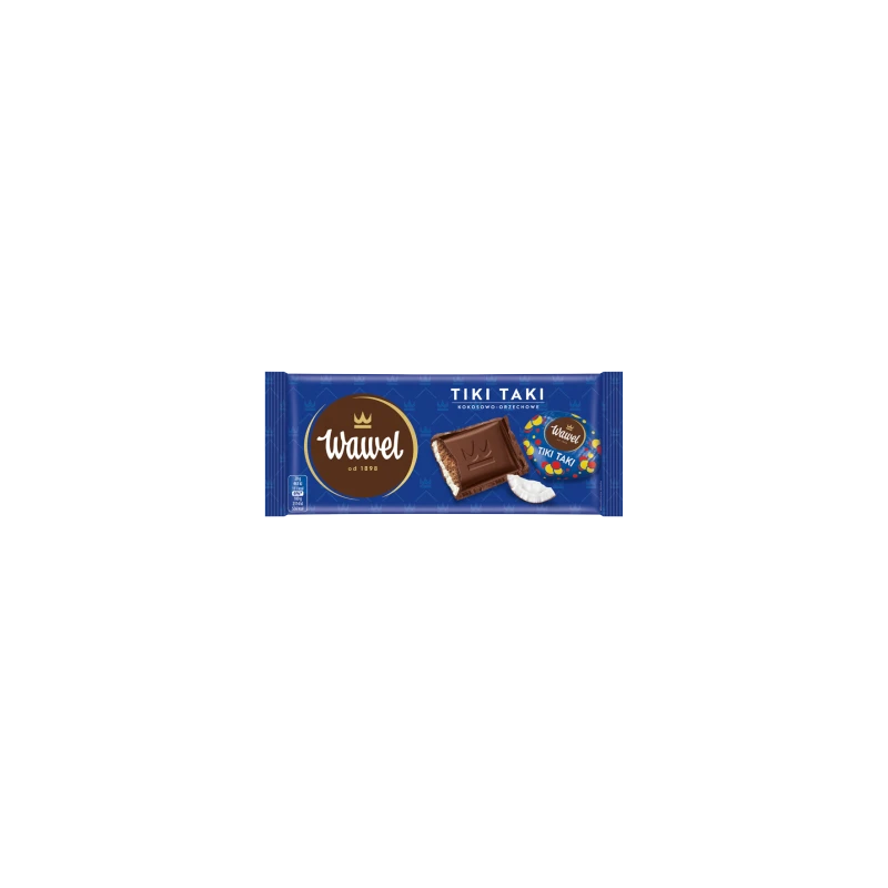Odkryj smak, którego nie da się pomylić z żadnym innym. Wawel Tiki Taki to kultowa kompozycja dwóch warstw nadzienia: intensywnie orzechowej oraz słonecznej, kokosowej. Całość została zamknięta w kruchym pancerzu z deserowej czekolady, tworząc harmonijną całość, która od lat zachwyca podniebienia Polaków.