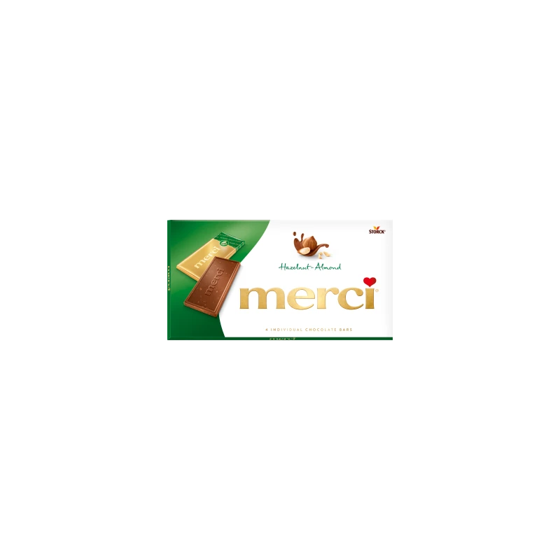 merci Czekolada mleczna z kawałkami orzechów laskowych i migdałów 100 g (4 sztuki)