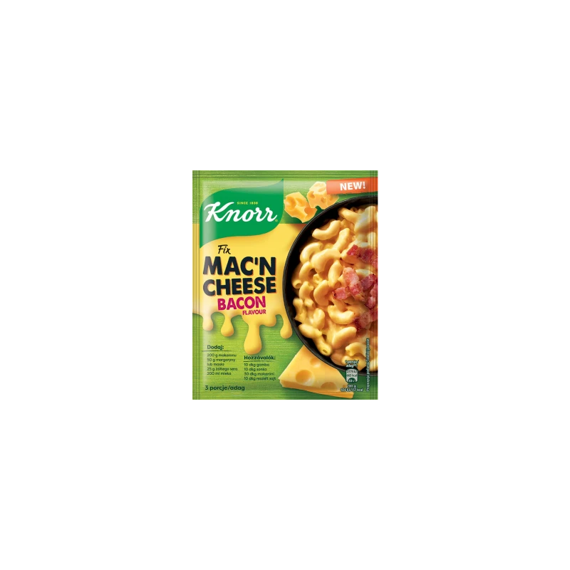 Kompozycja sera i przypraw do przygotowania dania mac'n cheese o smaku bekonu.