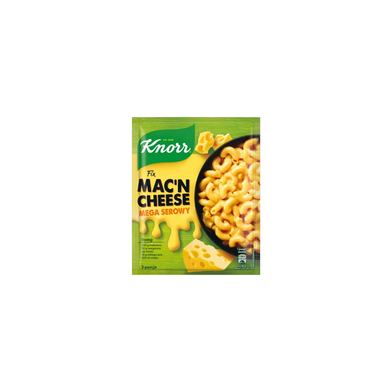 Knorr Fix Mac'n Cheese to wyjątkowy pomysł na obiad oraz idealne rozwiązanie dla wszystkich miłośników klasycznego, znanego z popkultury amerykańskiej makaronu z serem, ceniących sobie szybkie i proste w przygotowaniu posiłki. Ta kompozycja sera i przypraw w połączeniu z makaronem i masłem tworzy aromatyczne danie, które zadowoli zarówno dorosłych, jak i dzieci. Z Knorr Fix Mac'n Cheese skomponowanie dania na lunch czy obiad w postaci ulubionego makaronu jest nie tylko błyskawiczne, ale także wyjątkowo proste – nawet dla osób, które nie mają doświadczenia w kuchni. Intensywna, serowa nuta z delikatnym, maślanym akcentem to coś, co sprawi, że nawet najgorszy dzień nieco się rozjaśni, to idealna propozycja, gdy potrzebujesz otulenia i ciepłego posiłku z ciągnącym serem dającym tyle przyjemności! Przepis w wersji podstawowej oraz wzbogaconej o warzywa znajdziesz na opakowaniu. Śmiało możesz jednak eksperymentować z dodatkami, gdyż dzięki swojej uniwersalności, danie można dowolnie modyfikować, dodając ulubione składniki, takie jak boczek, łosoś, szpinak czy ulubione warzywa. W składzie Knorr Fix Mac'n Cheese znajdziesz wyłącznie wysokiej jakości składniki, nie znajdziesz za to sztucznych barwników. To maksimum smaku i łatwość przygotowania pysznego dania przy minimum wysiłku – wystarczy tylko kilka dodatkowych produktów. To jednocześnie niezawodne wsparcie w kuchni, które gwarantuje sukces i uśmiech na twarzy każdego smakosza. Sprawdź, jak szybkie i proste może być gotowanie.