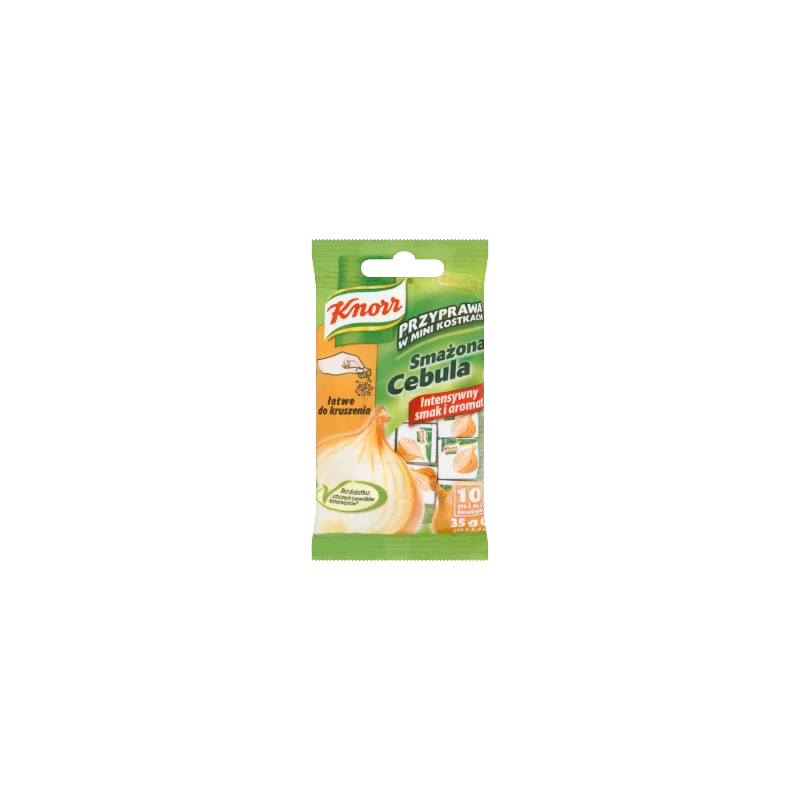 Przyprawa w mini kostkach Smażona cebula. Zapach jaki wydziela się podczas smażenia cebuli przyciągnie każdego do kuchni. Teraz już nie musisz tracić łez przy jej krojeniu. Wystarczy, że dodasz do dania przyprawę w Mini kostce Knorr Smażona cebula, a intensywny zapach potrawy zachęci do skosztowania wyśmienitej potrawy.