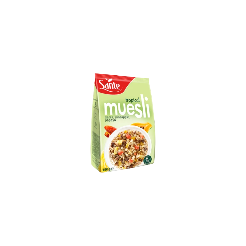 Poczuj powiew tropików w swojej miseczce śniadaniowej! Sante Musli Tropikalne to starannie dobrana kompozycja płatków zbożowych oraz bogatej mieszanki egzotycznych owoców. To idealna propozycja dla osób szukających lekkiego, a zarazem pożywnego posiłku, który dostarczy naturalnej energii na cały poranek bez dodatku zbędnego tłuszczu.