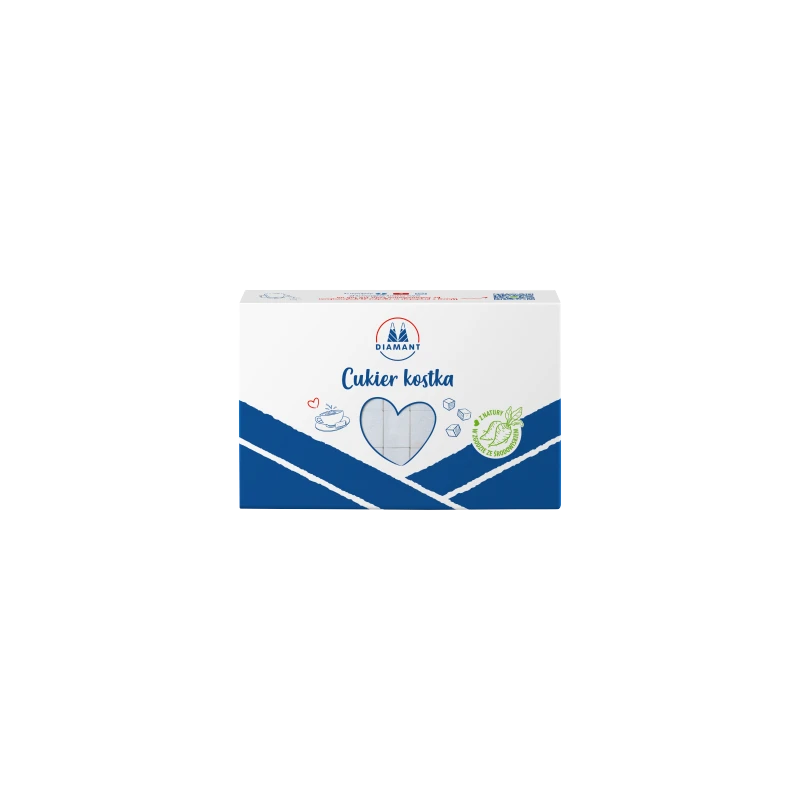 Cukier w kostkach marki Diamant to połączenie najwyższej jakości polskiego cukru z wygodną formą podania. Idealnie uformowane, równe kostki to doskonałe rozwiązanie do gorących napojów, które sprawdzi się zarówno w codziennym użytkowaniu, jak i podczas eleganckich spotkań przy kawie i herbacie.
