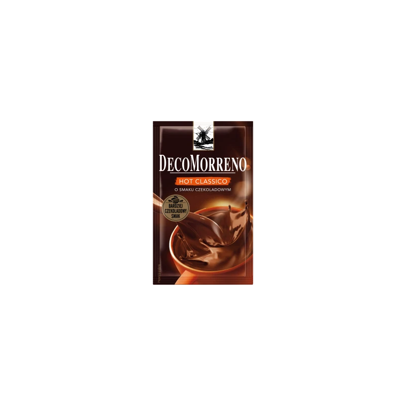 Dbając o najwyższą jakość, wytwarzamy DecoMorreno hot classico ze starannie dobranego kakao. Słodko-czekoladowy smak, mocny aromat oraz aksamitna konsystencja sprawiają, że DecoMorreno jest wyjątkowe. Delektuj się tą intensywną przyjemnością!