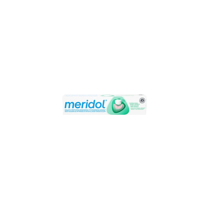 Dbaj o swoje dziąsła i zęby z pastą meridol Ochrona Dziąseł i Świeży Oddech. Ta pasta do zębów została stworzona przez ekspertów, aby walczyć szybko** z przyczyną* krwawienia i zapalenia dziąseł. Pasta do zębów pomaga również chronić przed nawrotami objawów* i ma podwójnie aktywną delikatną formułę, która zapewnia efekt antybakteryjny* i długotrwałą ochronę.