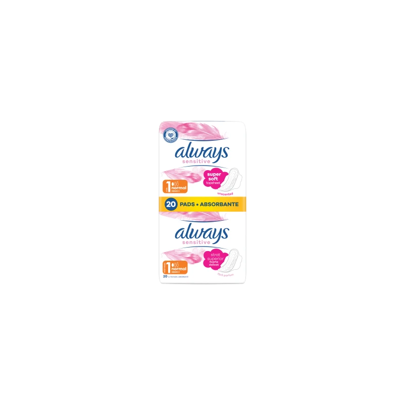 Podpaski Always Sensitive Normal Plus Ultra ze skrzydełkami ComfortLock zostały opracowane pod kątem lepszego dopasowania*, tak aby nie przeciekały, nie przesuwały się i nie powodowały dyskomfortu. Dzięki podpaskom Always Sensitive nie musisz się martwić okresem. Always Sensitive Normal (rozmiar 1) ze skrzydełkami zaleca się do stosowania w ciągu dnia w przypadku lekkiego i umiarkowanego krwawienia. Wypróbuj Always Sensitive Secure Night Extra (rozmiar 5), najlepsze podpaski Always Sensitive oferujące ochronę w nocy. * w porównaniu z poprzednim produktem.