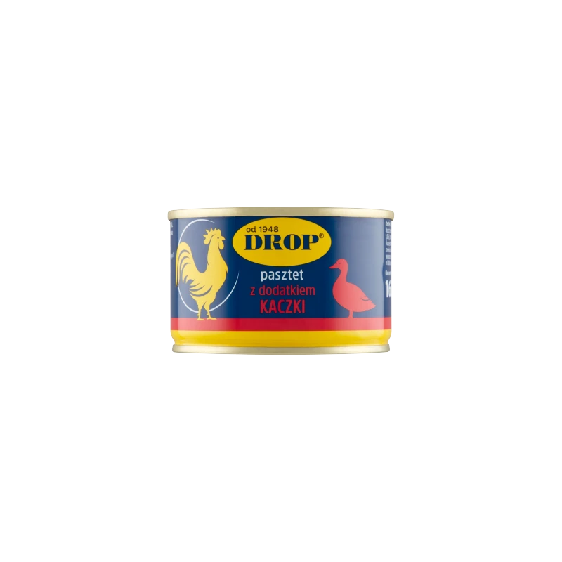 Drop Pasztet z dodatkiem kaczki 160 g to propozycja dla osób szukających głębszego, bardziej wyrazistego smaku w kategorii tradycyjnych pasztetów drobiowych. Dzięki dodatkowi kaczki, pasztet zyskuje unikalny aromat i jeszcze bardziej kremową konsystencję, która idealnie współgra ze świeżym pieczywem.