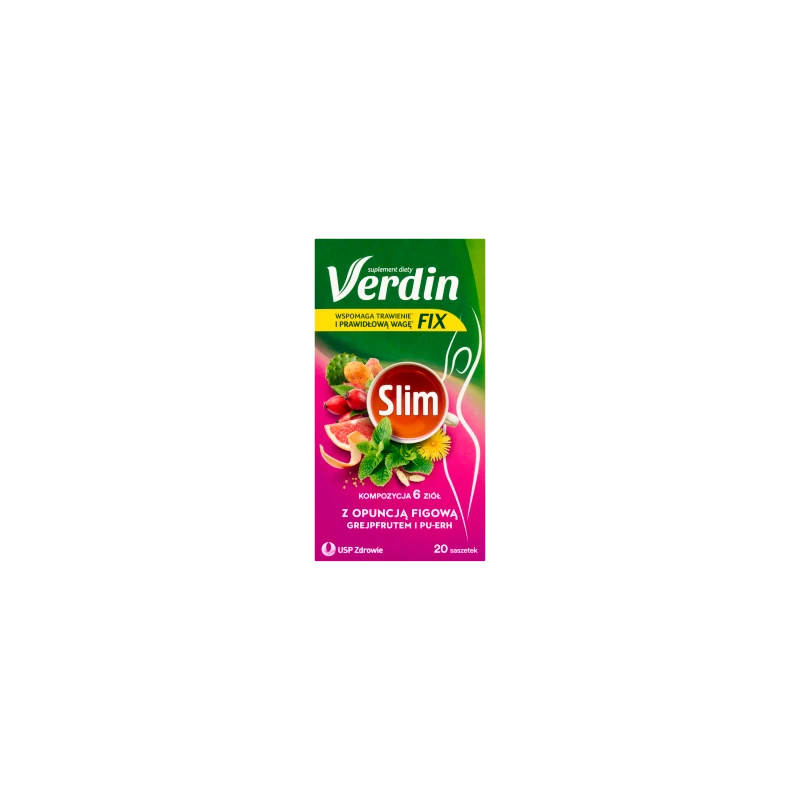 Verdin fix Slim to zaawansowana herbata ziołowa, która łączy tradycyjną moc 6 ziół na trawienie z nowoczesnym wsparciem w odchudzaniu dzięki zawartości opuncji figowej i herbaty Pu-erh. Unikalna receptura aktywnie wspomaga metabolizm tłuszczów oraz pomaga utrzymać prawidłową masę ciała, stanowiąc naturalny element Twojej codziennej diety.
