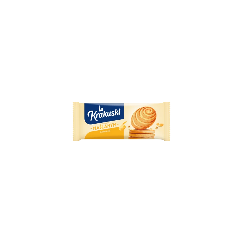 Smak, który łączy pokolenia! Herbatniki maślane Krakuski to kwintesencja kruchości i delikatnego aromatu. Wypiekane z dbałością o tradycję, od lat stanowią ulubioną przekąskę Polaków. Ich złocisty kolor, idealna chrupkość i łagodny profil smakowy sprawiają, że są niezastąpione w każdym domu.