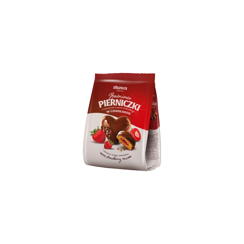 Pierniki w kształcie serduszka, pokryte grubą warstwą czekolady, a ich środek wypełnia pyszne truskawkowe nadzienie przygotowane ze specjalnie wyselekcjonowanych składników, które zadowolą najbardziej wymagających konsumentów ceniących produkty wysokiej jakości.