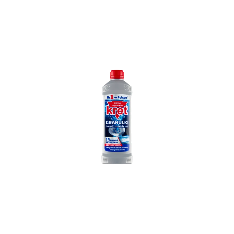 Kret Granulki do udrożniania rur (560 g) to bezlitosny dla zatorów środek o profesjonalnej skuteczności, przeznaczony do czyszczenia rur i syfonów w instalacjach kanalizacyjnych. Dzięki unikalnej formule z dodatkiem aktywatora aluminiowego, granulki błyskawicznie rozpuszczają zanieczyszczenia organiczne, takie jak tłuszcz, włosy, resztki jedzenia, papier czy watę.
