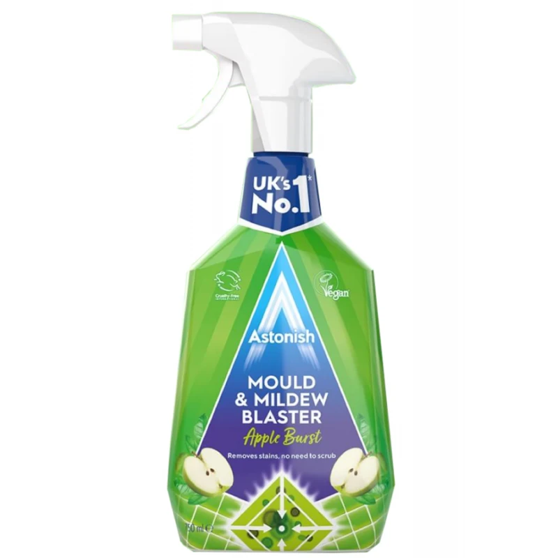 Astonish Mould & Mildew Blaster Apple Fresh (750 ml) to bezlitosny dla pleśni i grzybów preparat w sprayu, który przywraca higieniczną czystość w zaledwie kilka minut. Jego silna formuła błyskawicznie penetruje zarodniki pleśni, skutecznie usuwając czarne naloty z fug, uszczelek, ram okiennych oraz kabin prysznicowych.