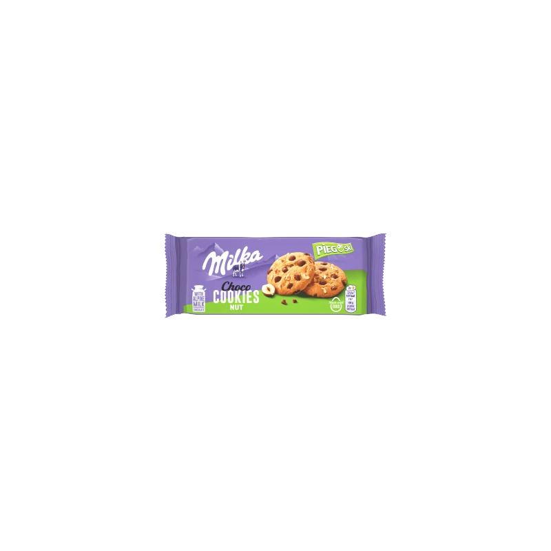 Milka Pieguski Choco Nut to klasyczne ciastka z kawałkami mlecznej czekolady Milka z alpejskiego mleka i chrupiącymi orzechami laskowymi. Opakowanie 135 g - idealne do dzielenia się z bliskimi.