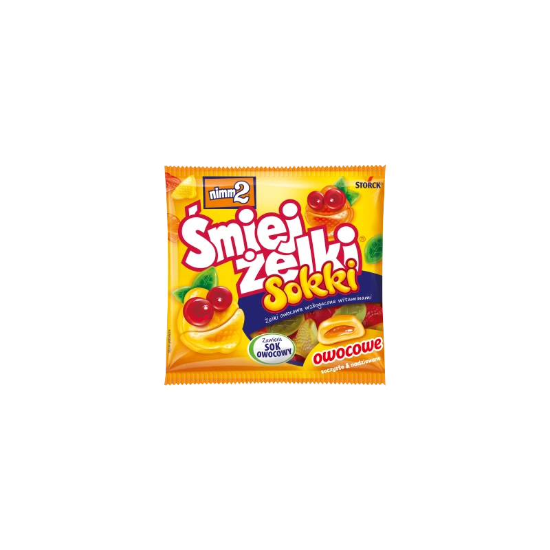 To owocowe żelki z płynnym nadzieniem z sokiem owocowym, które są nie tylko pyszne, ale i wzbogacone witaminami. Charakterystyczne „owocowe buźki” to znak rozpoznawczy marki nimm2.