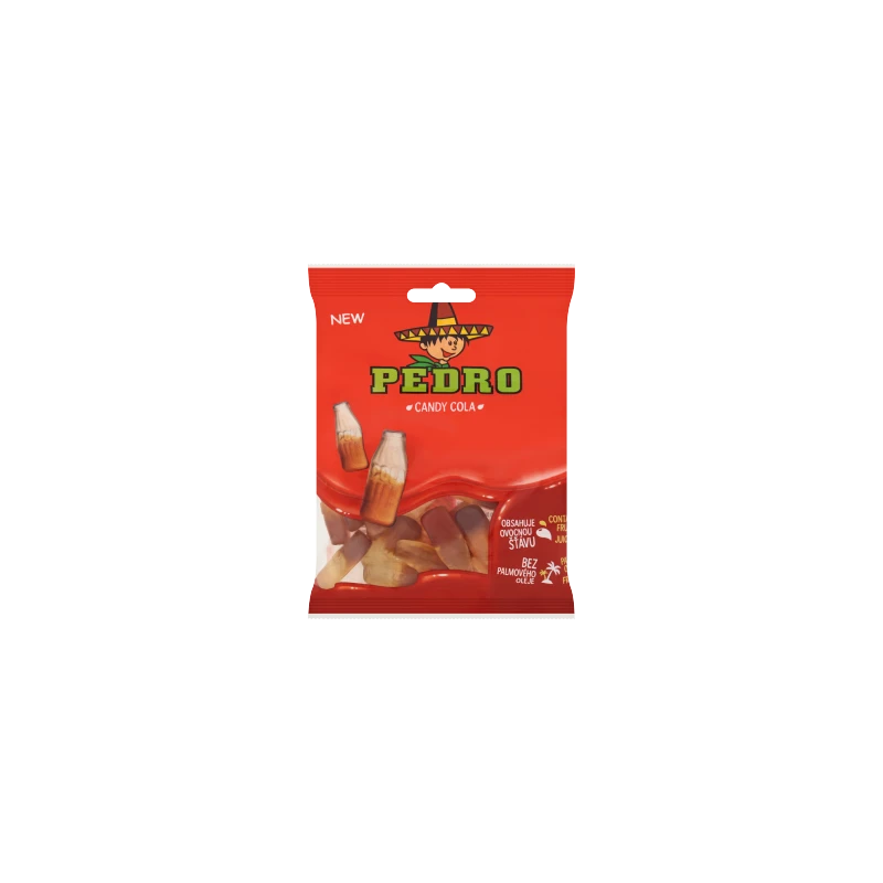 Pedro to czeska marka żelek, która słynie z klasycznych receptur i wyrazistych smaków. Żelki o smaku coli w opakowaniu 80 g to absolutny fundament świata słodyczy – kultowy kształt buteleczek i orzeźwiający smak napoju typu cola.