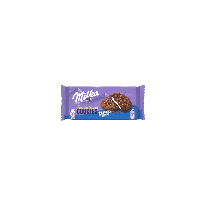 Milka Sensations Oreo to wyjątkowe połączenie chrupiącego ciastka z kawałkami delikatnej czekolady Milka oraz aksamitnego nadzienia o smaku waniliowym, znanego z kultowych ciastek Oreo. To propozycja dla prawdziwych miłośników słodkości, którzy szukają wielowymiarowej tekstury – od kruchych brzegów, po miękkie, kremowe wnętrze. Ciasteczka smakują wyśmienicie prosto z opakowania, ale zyskują jeszcze bardziej, gdy podgrzejesz je przez kilka sekund w kuchence mikrofalowej, co sprawia, że nadzienie staje się płynne, a kawałki czekolady kusząco się rozpuszczają.