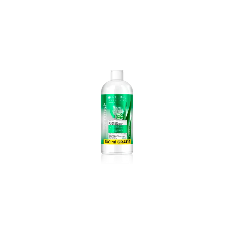Odświeżająco-łagodzący aloesowy płyn micelarny 3 w 1 Eveline Cosmetics, opracowany w celu minimalizowania ryzyka alergii: