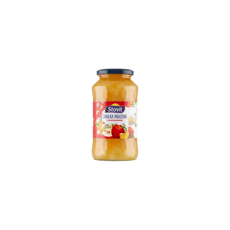 Jabłka prażone Stovit z brzoskwiniami to propozycja dla tych, którzy szukają urozmaicenia dla klasycznej szarlotki. Połączenie dwóch ulubionych owoców w jednym słoiku tworzy kompozycję o wyjątkowym aromacie i delikatnej teksturze. Idealnie sprawdzi się jako baza do "szarlotki z niespodzianką", dodatek do porannej owsianki, ryżu z cynamonem czy jako wypełnienie chrupiących rogalików z ciasta francuskiego. Duże opakowanie 720 g to idealna porcja dla całej rodziny.