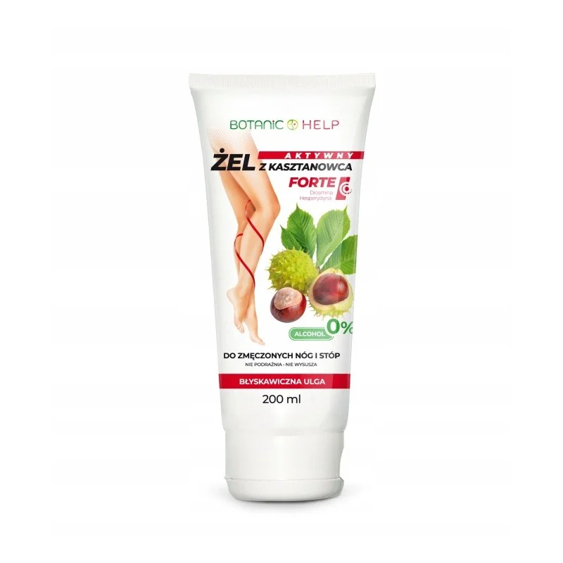 Botanic Help Żel z Kasztanowca Forte to zaawansowany preparat stworzony z myślą o osobach borykających się z problemem „ciężkich nóg”, pękającymi naczynkami oraz obrzękami. Skoncentrowana formuła oparta na naturalnych ekstraktach roślinnych działa kojąco i usprawnia mikrokrążenie.