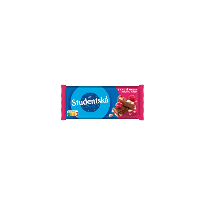 Odkryj legendarny smak prosto z Czech! Studentská Pečeť Mleczna to coś więcej niż zwykła czekolada. To unikalne połączenie aksamitnej, mlecznej czekolady Orion z ogromną ilością chrupiących orzeszków ziemnych, miękkich żelek oraz aromatycznych kawałków galaretki malinowej. Ta bogata kompozycja sprawia, że każda kostka smakuje inaczej, dostarczając wyjątkowych wrażeń teksturalnych i smakowych.