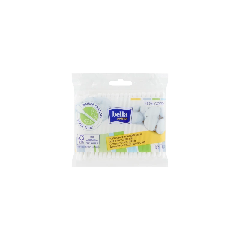 Wybierz pielęgnację przyjazną dla środowiska! Patyczki higieniczne Bella Cotton to produkt stworzony z myślą o zrównoważonym rozwoju. Zamiast plastikowego trzonu, zastosowano w nich wytrzymały papierowy patyczek, co sprawia, że produkt jest bezpieczniejszy dla planety, nie tracąc przy tym na swojej funkcjonalności i stabilności.