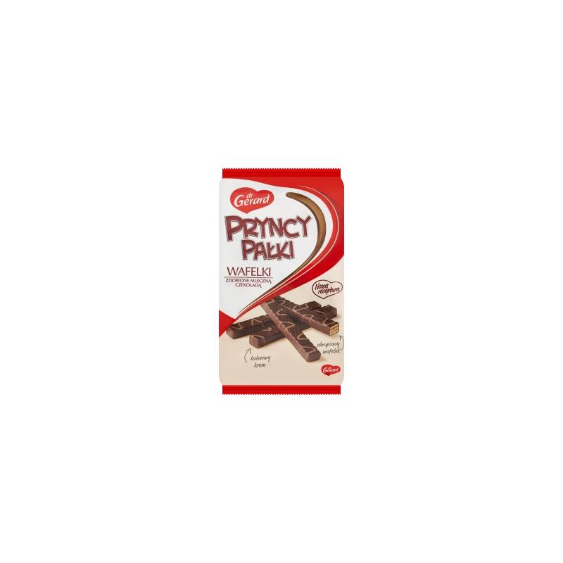 dr Gerard PryncyPałki 200 g to legendarna przekąska, która zachwyca unikalną formą długich, chrupiących rurek. Każdy wafelek kryje w sobie delikatne, aksamitne nadzienie, a całość została ozdobiona kunsztownym wzorem z prawdziwej mlecznej czekolady. Dzięki swojej formie, PryncyPałki są niezwykle wygodne do chrupania w każdej sytuacji – jako elegancki dodatek do kawy, słodki poczęstunek dla gości czy szybka przekąska w podróży. Opakowanie 200 g to idealna porcja do dzielenia się z najbliższymi. Postaw na niepowtarzalną strukturę i sprawdzony smak, który od lat gości w polskich domach.