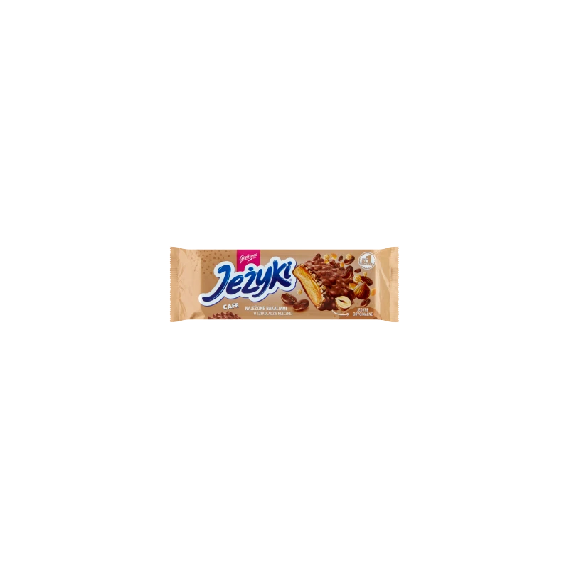 Goplana Jeżyki Cafe 140 g to unikalne połączenie chrupkości i głębokiego smaku, które zachwyci każdego miłośnika kawy. Te wyjątkowe herbatniki wyróżniają się najeżoną strukturą, którą tworzą chrupki ryżowe oraz orzechy laskowe zatopione w gęstym karmelu o smaku kawowym. Całość została oblana grubą warstwą aksamitnej czekolady mlecznej, co sprawia, że każde ciasteczko smakuje jak Twoja ulubiona kawa w formie pysznego deseru. Jeżyki Cafe to idealny wybór na elegancki poczęstunek podczas spotkań towarzyskich, słodką przerwę w pracy czy energetyczny dodatek do popołudniowej filiżanki espresso. Praktyczna tacka wewnątrz opakowania 140 g dba o to, by każde ciasteczko dotarło do Ciebie w nienaruszonym stanie.