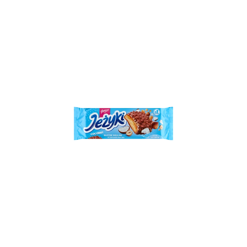 Goplana Jeżyki Kokosowe 140 g to wyjątkowa propozycja, która łączy legendarną chrupkość z delikatnym aromatem tropików. Te najeżone herbatniki wyróżniają się bogatym wnętrzem – pod grubą warstwą mlecznej czekolady kryje się gęsty karmel wypełniony wiórkami kokosowymi, chrupiącymi orzechami laskowymi oraz lekkimi chrupkami ryżowymi. Każdy kęs to wielowarstwowa uczta dla podniebienia, od kruchości herbatnika po aksamitną słodycz nadzienia. Jeżyki Kokosowe to idealny wybór na słodką chwilę relaksu, poczęstunek dla gości czy energetyczny deser, który zaskakuje nietuzinkowym połączeniem tekstur. Dzięki praktycznemu opakowaniu z tacką, ciastka pozostają nienaruszone i zachowują swoją świeżość na dłużej.