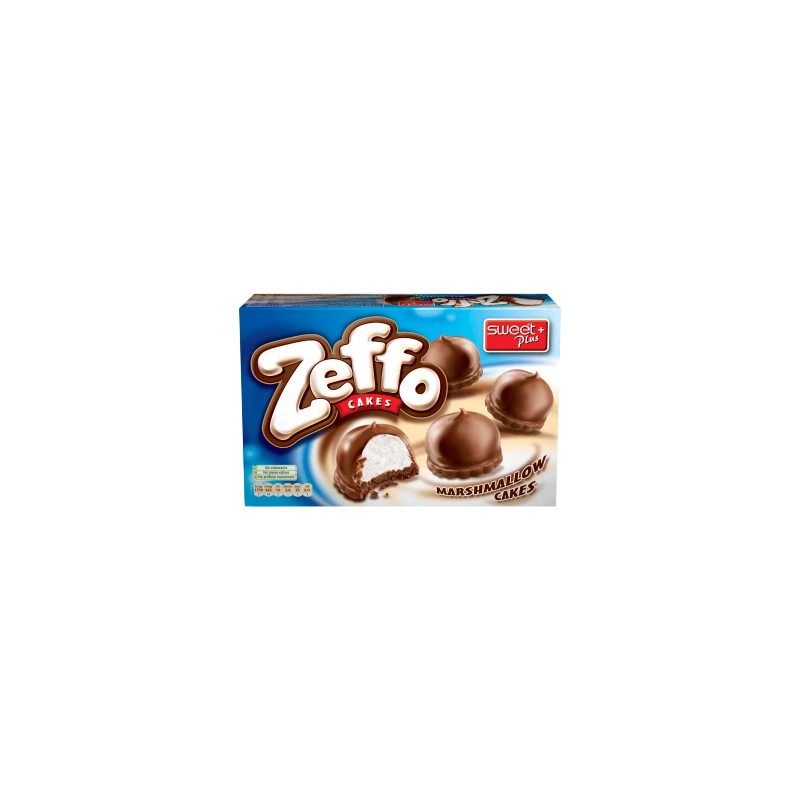 Zeffo to lekkie łakocie, które składają się z kruchego kakaowego ciastka połączonego z miękką waniliową pianką marshmallow o smaku waniliowym w polewie kakaowo-mlecznej. Ciasteczka pakowane są w plastikowy pojemnik po 10 szt., który zabezpiecza deser przed uszkodzeniem.