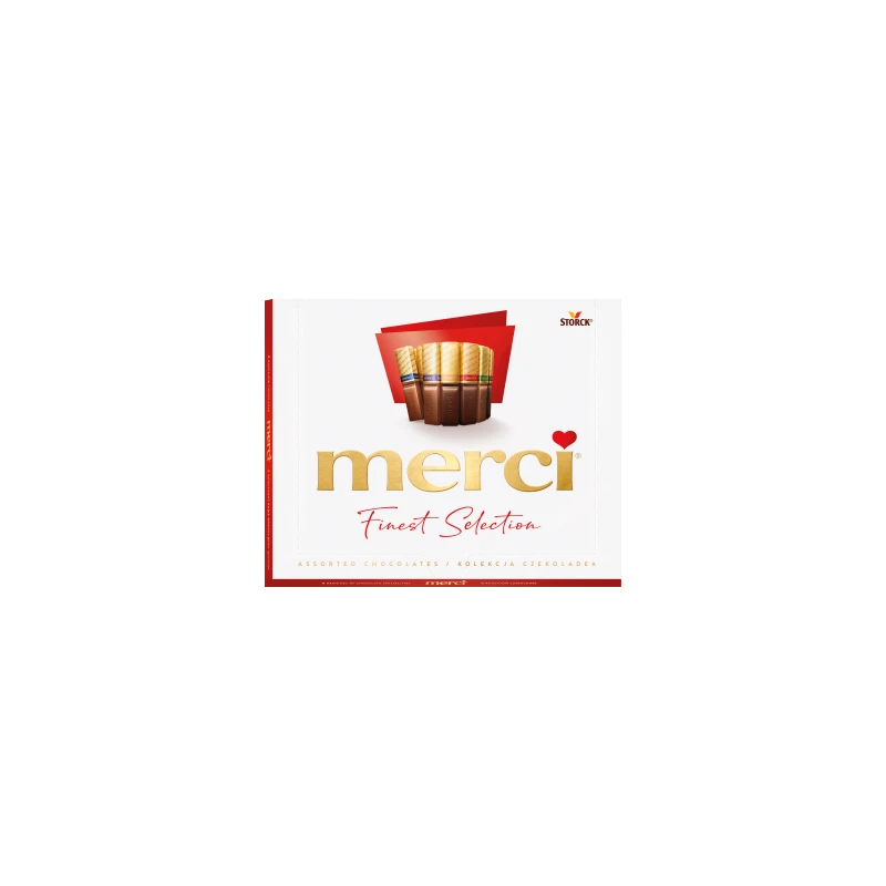 To jedna z najbardziej rozpoznawalnych bombonierek na świecie, która stała się synonimem serdecznego podziękowania. merci Finest Selection w wersji 250 g to starannie dobrana kolekcja 20 rurkowych czekoladek, z których każda jest pakowana osobno i oznaczona kolorowym paskiem informującym o smaku.