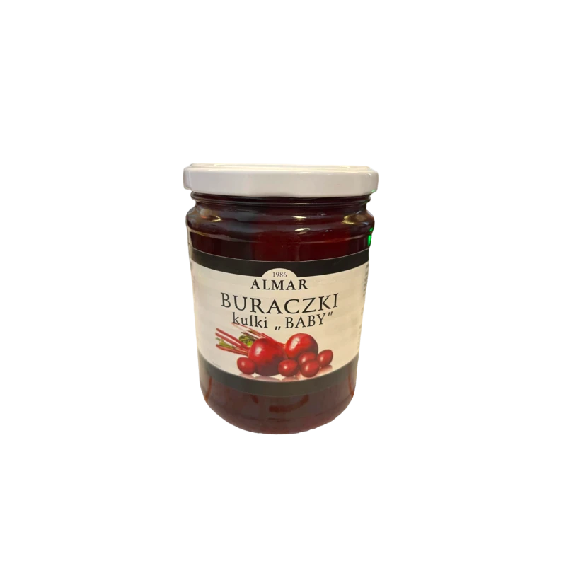 Składniki: Buraki czerwone całe (typu baby), woda, ocet spirytusowy, cukier, sól.