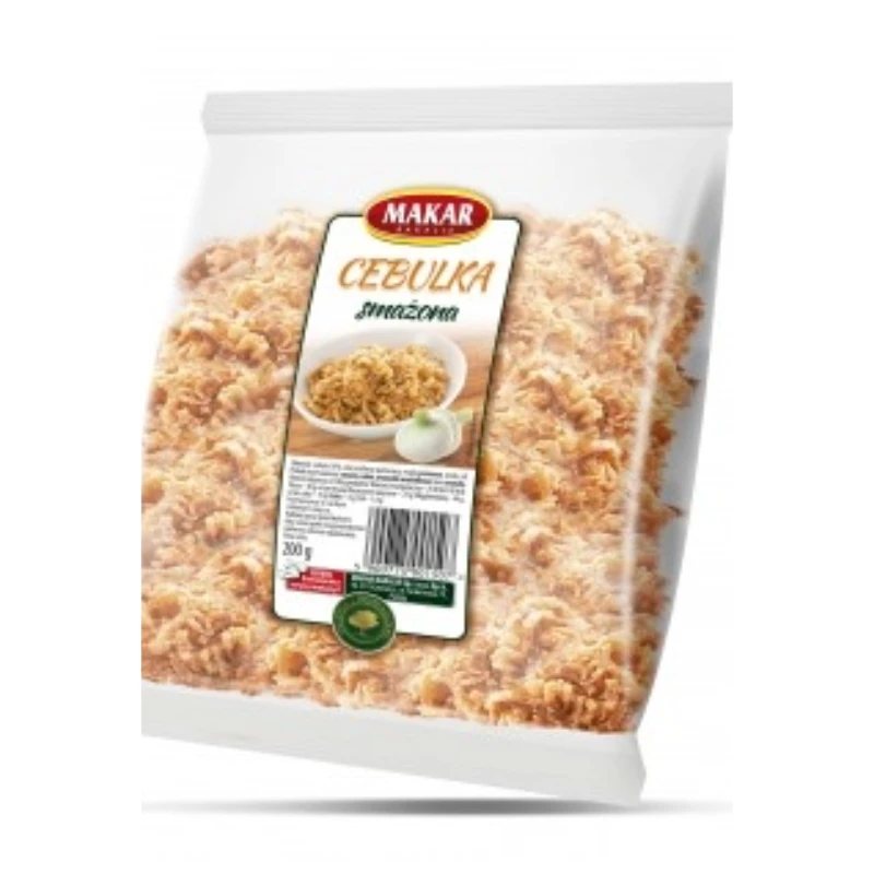 Cebulka smażona MAKAR to chrupiący i aromatyczny dodatek do wielu potraw. Idealna do zup, sosów, gulaszów, dań typu fast food, a także jako posypka do ziemniaków, kanapek czy sałatek. Produkt charakteryzuje się wysoką jakością i intensywnym smakiem.