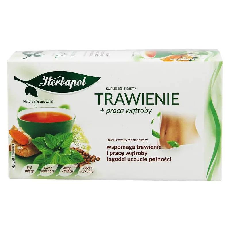 Składniki: Liść mięty pieprzowej (30%), owoc kolendry (30%), owoc kminku (15%), owoc kopru włoskiego (10%), kłącze kurkumy (10%), kłącze imbiru