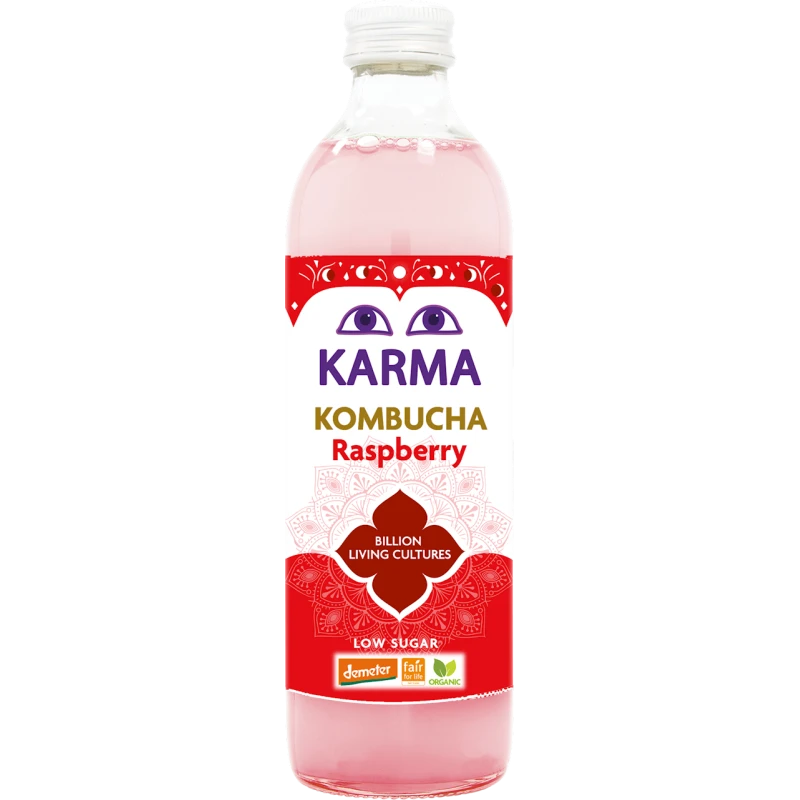 Karma Kombucha to w 100% organiczny, naturalnie gazowany napój, który powstaje w wyniku fermentacji herbaty zielonej z dodatkiem cukru trzcinowego i kultury kombuchy.