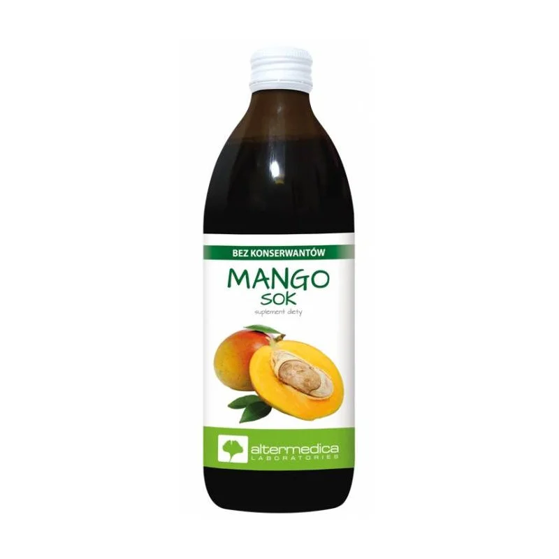 Składniki: sok z owoców mango (Mango Alphonos), :kwas L-askorbinowy źródło witaminy C , kwas cytrynowy regulator kwasowości .
