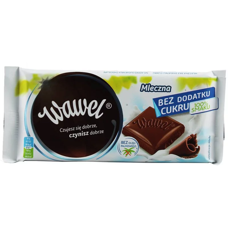Składniki: substancja słodząca: maltitol, tłuszcz kakaowy, mleko w proszku pełne, miazga kakaowa, serwatka w proszku (z mleka), emulgator: lecytyny (z soi).