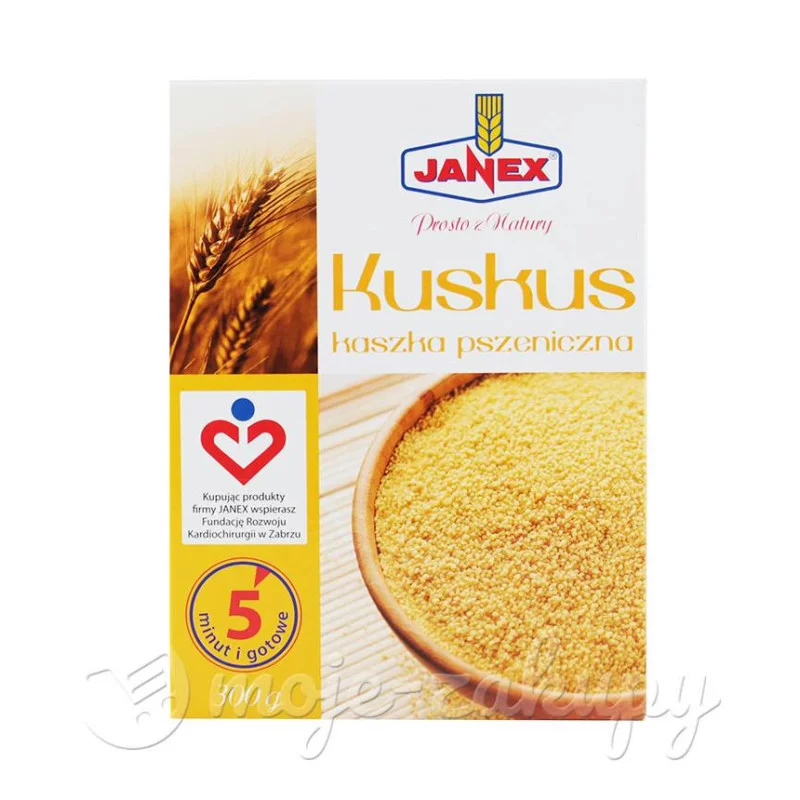 Sposób przygotowania: wsypać kuskus do naczynia, następnie zalać wrzącą wodą tak, aby poziom wody przekraczał 1 cm poziom kaszy, następnie odczekać 5 minut.